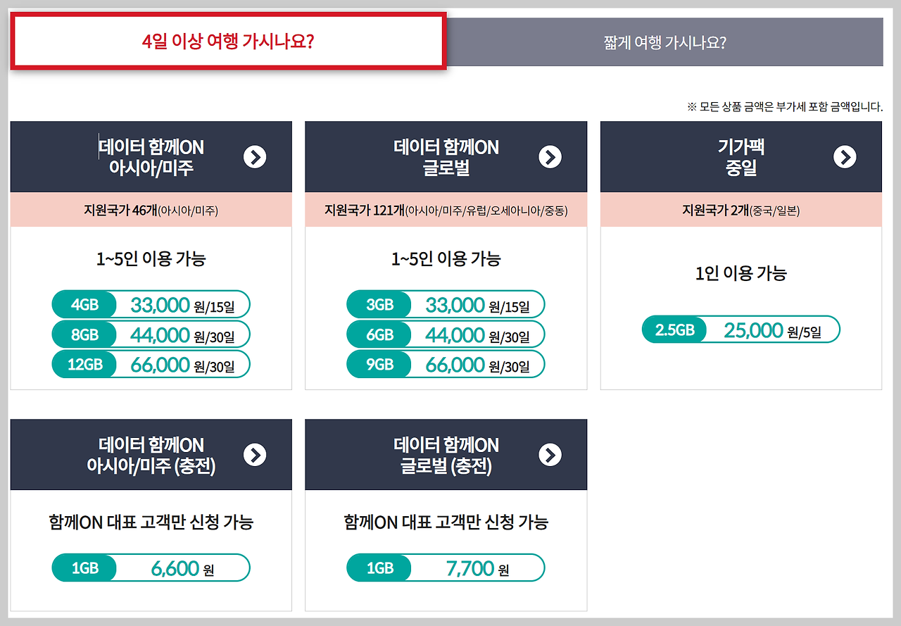 - 원하는 요금제 선택: 사용하려는 국가와 사용 기간에 맞는 로밍 요금제를 선택합니다.