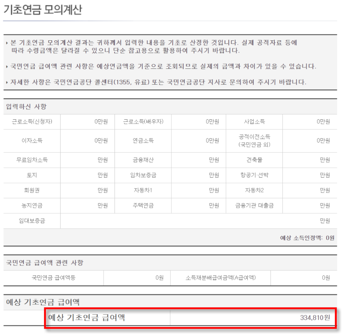 국민연금 기초연금 모의계산