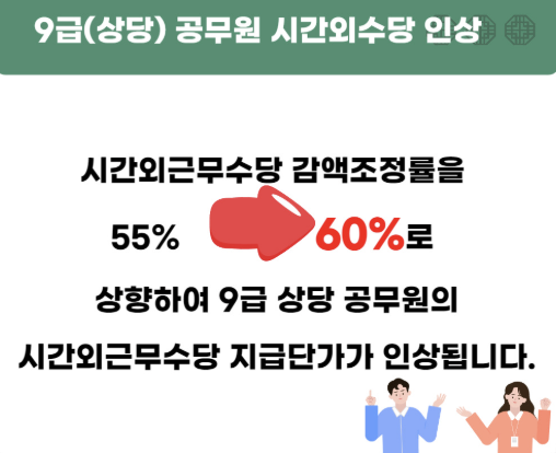- 구성: 시간외근무수당 지급 단가 인상, 감액 조정률이 55% -> 60% 상향