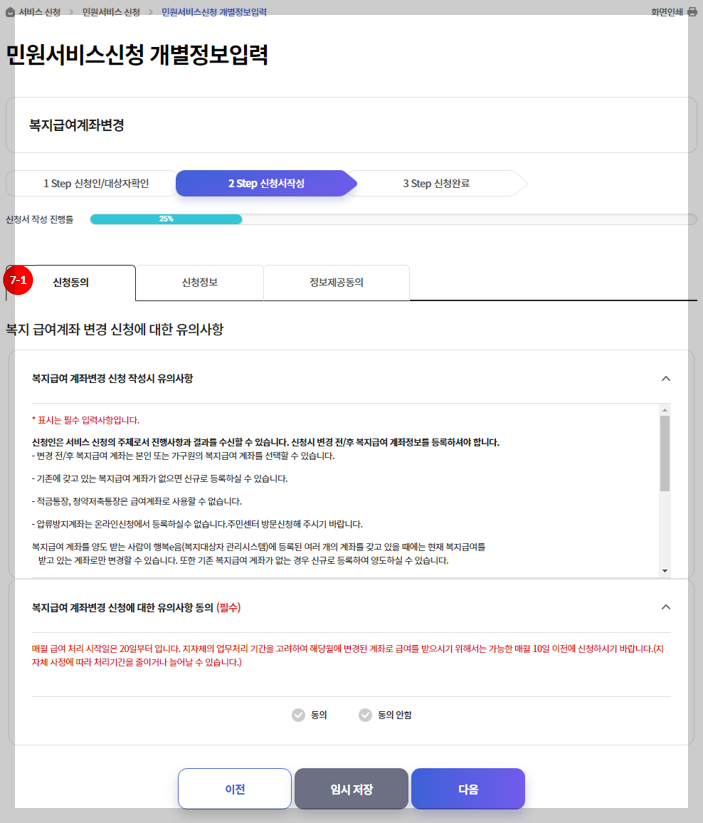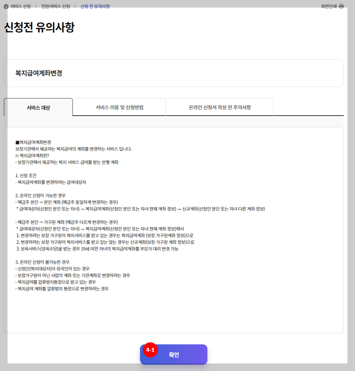 - 변경 처리가 완료되지 않으면 기존 계좌로 지급됩니다.