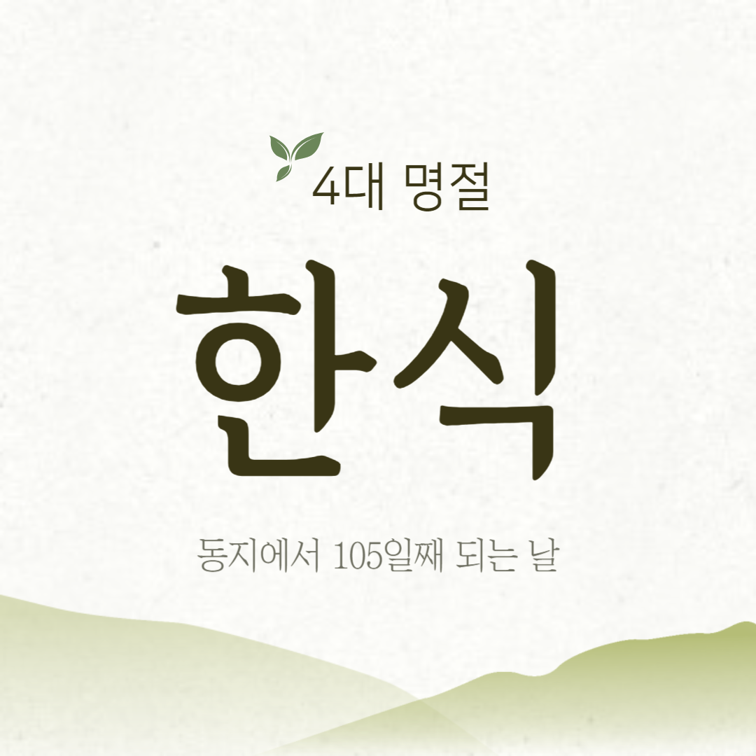 한식은 동지로부터 105일째 되는 날로 보통 4월 5일 또는 6일 청명 다음 날이거나 같은 날이 됩니다.