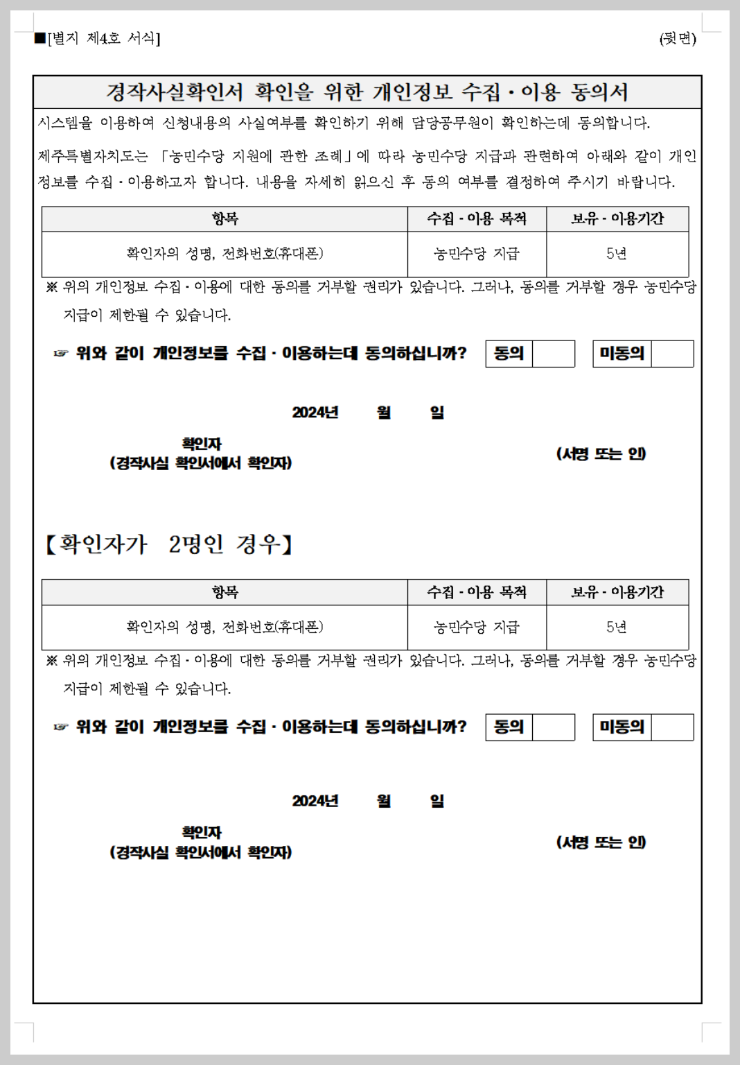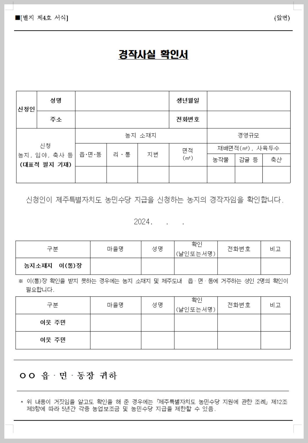 - 경작사실확인서 (아래 파일 첨부 및 이미지 첨부)