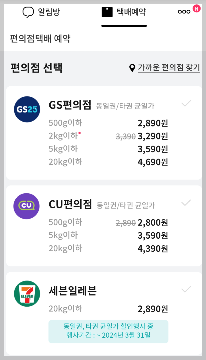 오늘은 편의점 택배 보내는 방법을 선택해보겠습니다.