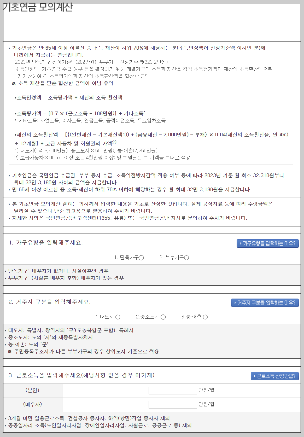 기초연금 모의계산은 어떻게 하나요?