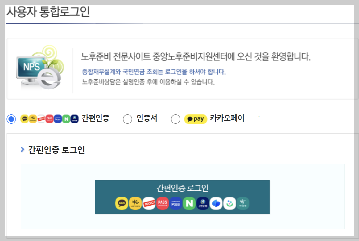 기초연금 모의계산 사이트에서 기초연금 모의계산을 클릭하시면 아래와 같이 로그인 화면이 나오게 됩니다. 간편 인증 서비스를 이용하셔도 로그인이 되며 공동인증서나 금융인증서 이용 시에는 보다 자세한 내용을 확인하실 수 있습니다.