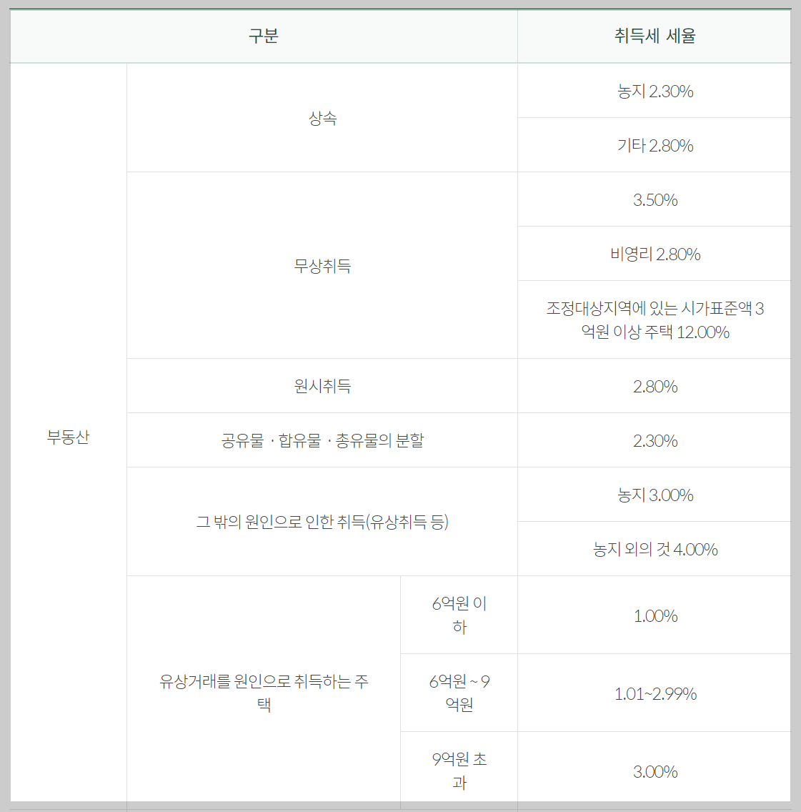 부동산 취득세율