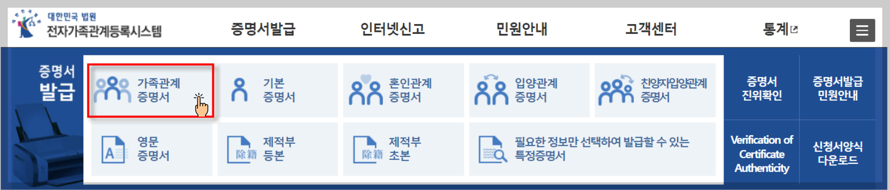 가족관계증명서 발급순서