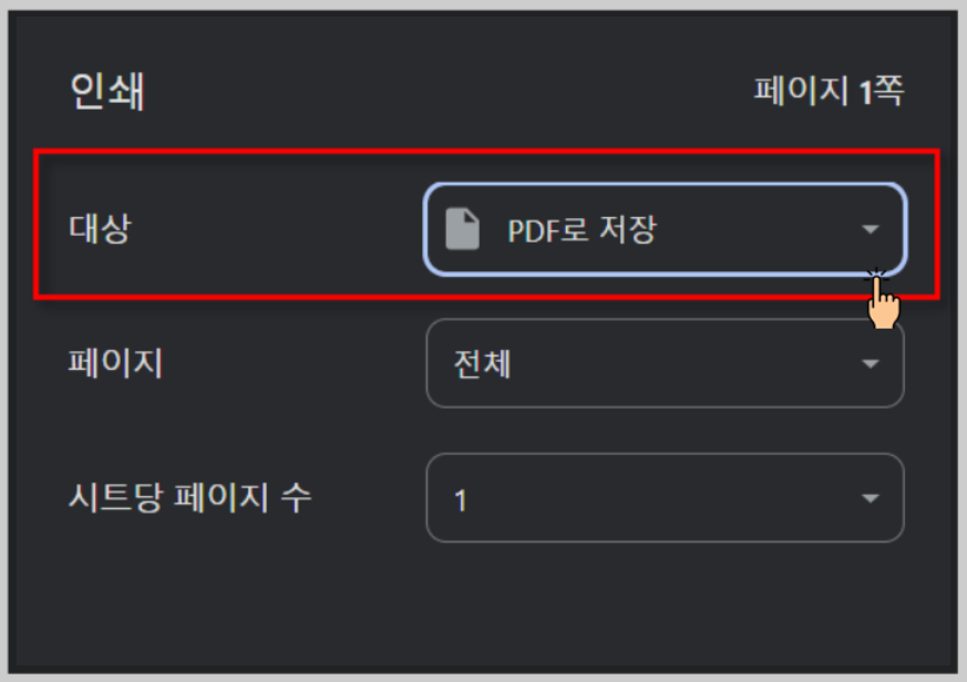 프린터가 연결되어있는 경우 프린터기를 선택하고 하단의 인쇄를 눌러주면 됩니다.