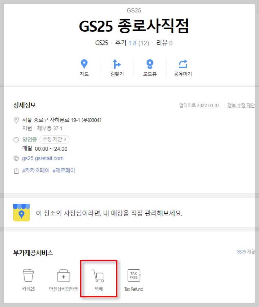 가까운 편의점을 선택하셔서 누르시면 해당 지점에서 택배가 가능한지 확인할 수 있습니다.