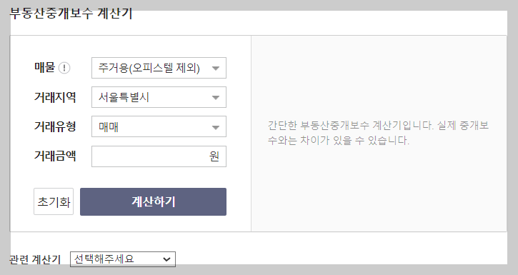 계산기는 검색사이트 네이버 또는 다음에서 부동산 중개보수 계산기, 복비 계산기를 검색하시면 됩니다.