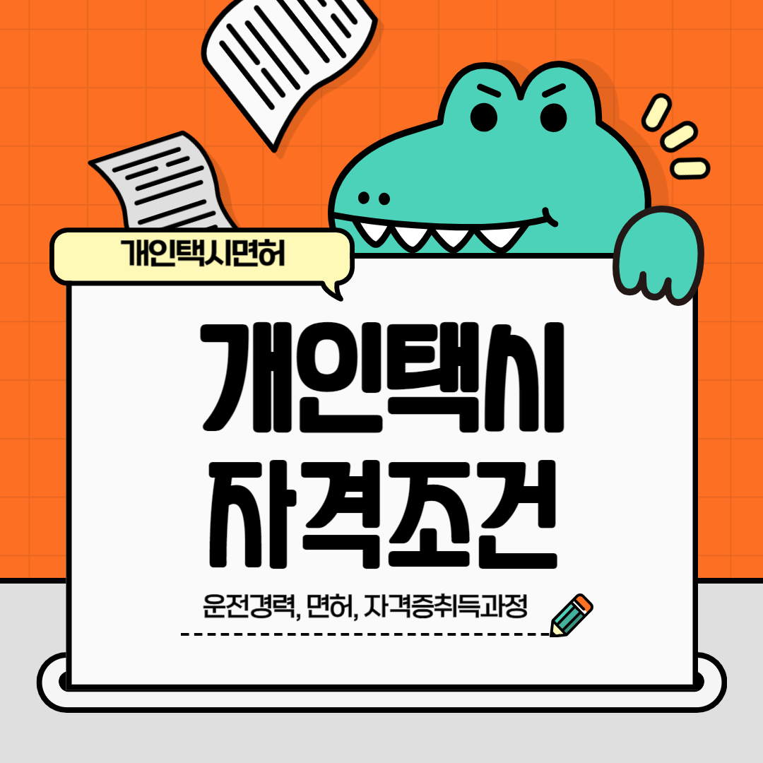 개인택시 자격을 위한 필기시험을 통과해야 합니다. 이 시험은 교통 법규, 운전 상식, 서비스 정신 등을 평가합니다.