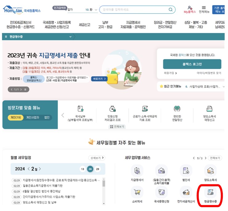 홈택스 현금영수증 사이트