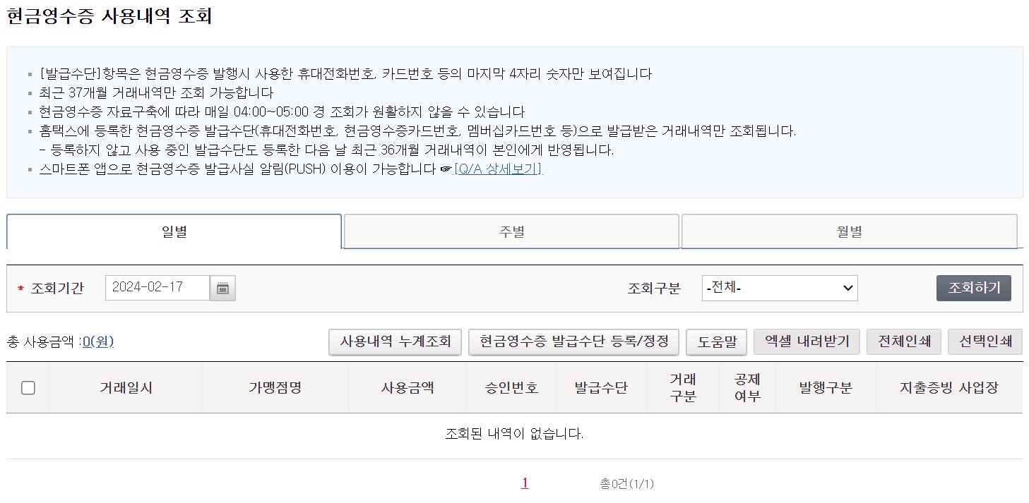 현금영수증 조회가 되지 않을 때
